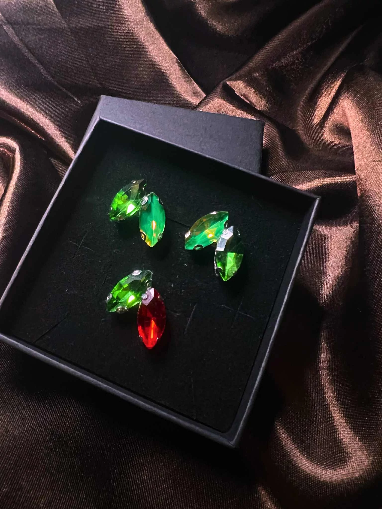Minden boxban 3 fülbevaló lapul – néha kettő egyforma és egy harmonizáló, máskor három különböző, mégis tökéletes összhangban.